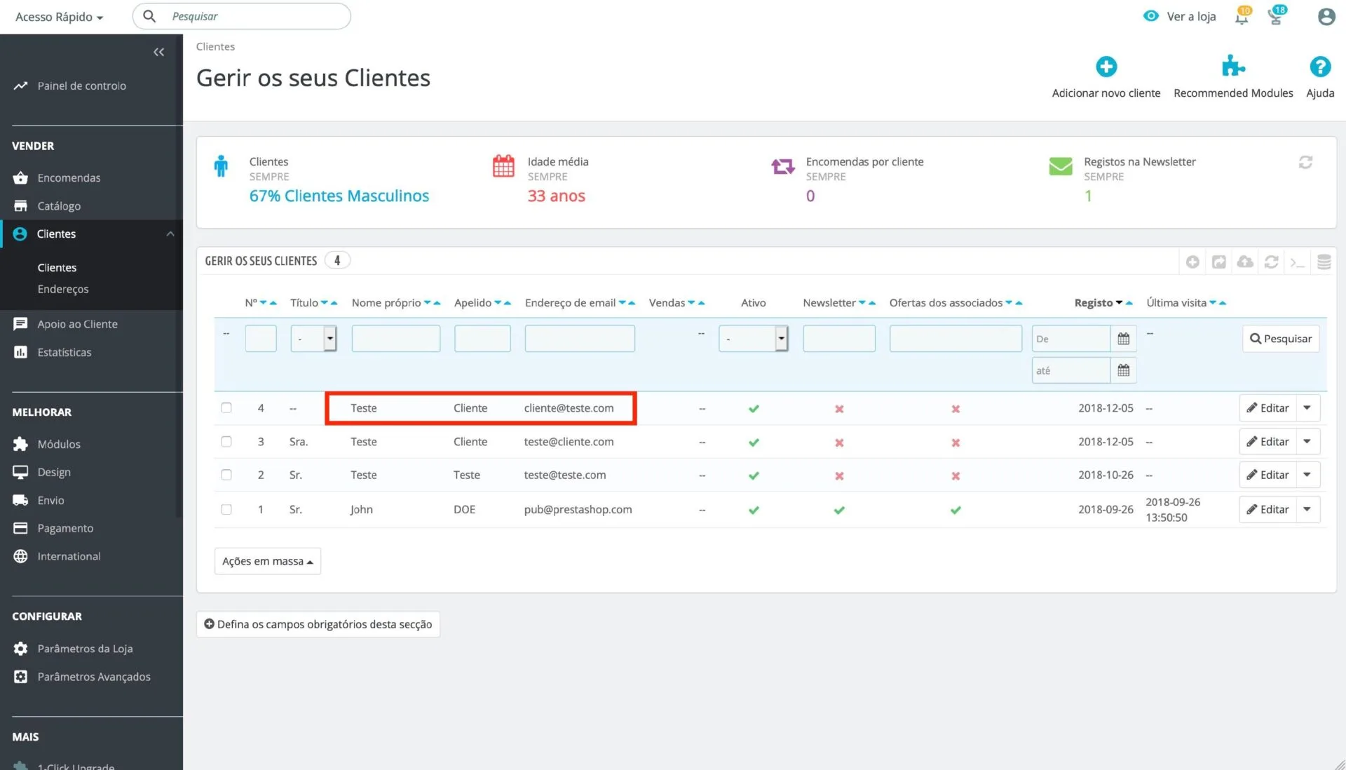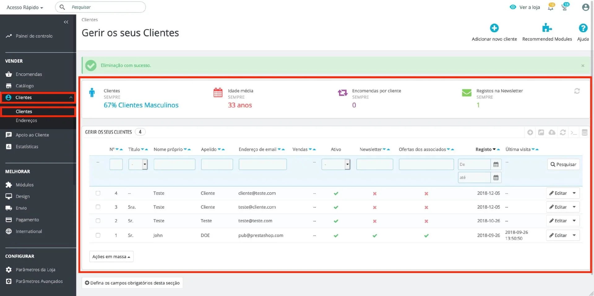 • Newsletter: indica se o cliente está ou não inscrito na newsletter.